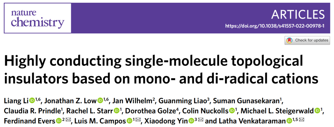 半导体领域的摩尔定律预示了器件小型化甚至微型化的趋势,使人们的目光逐渐聚焦到分子电子学这一新兴领域。目前,单分子电路导电元件的研究大多数都是基于共轭单元构筑分子导线,并且通常通过相干和非共振机制进行传导。但在这种情况下,电导率会随着分子导线长度的增加呈指数下降。因此,自 1980 年代以来,人们提出了构建具有反向电导衰减的分子导线的设想,也就是说,分子线的电导率随着长度的增加而增加。在此类研究中,实现反常电导-长度关系的一种方法是设计具有双自由基特征的分子线,使其遵循有机一维拓扑绝缘体的Su-Schrieffer-Heeger (SSH)模型(例如聚乙炔)。在过去的一系列工作中,人们已经尝试使用聚甲炔、cumulenes和卟啉低聚物等作为单分子导线。然而,这些分子的电子传输与 SHH 模型中预期的电导量子 (G0 = 2e2/h) 相去甚远。为了开发基于 SHH 模型的导线,设计扩展的 π 共轭体系,以实现高导电的双自由基特性,以及稳定的结构特征使末端自由基与环境绝缘,是亟待解决的难题。